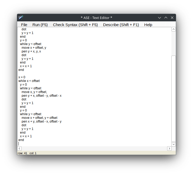 It is a simple drawing program that uses a programming language designed for this project. I was instructed to create a program to meet a specific set of guidelines. I achieved 100% of the available marks in this project, meeting all of the criteria necessary.